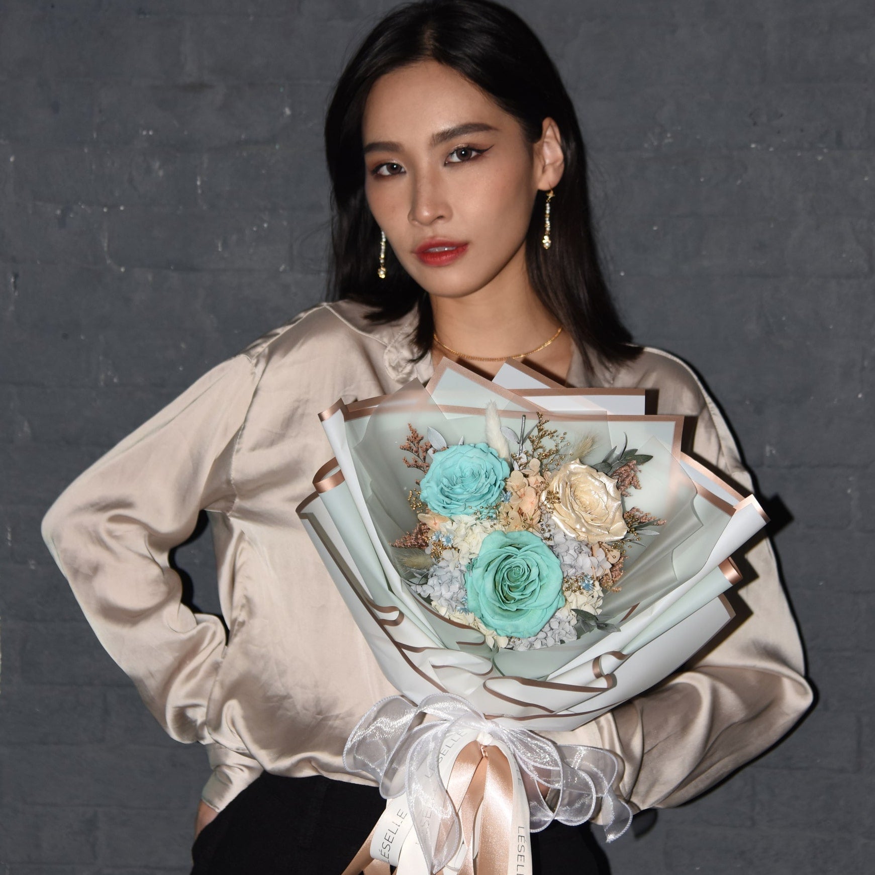 Preserved Flower Bouquet - Tiffany Blue & White Roses