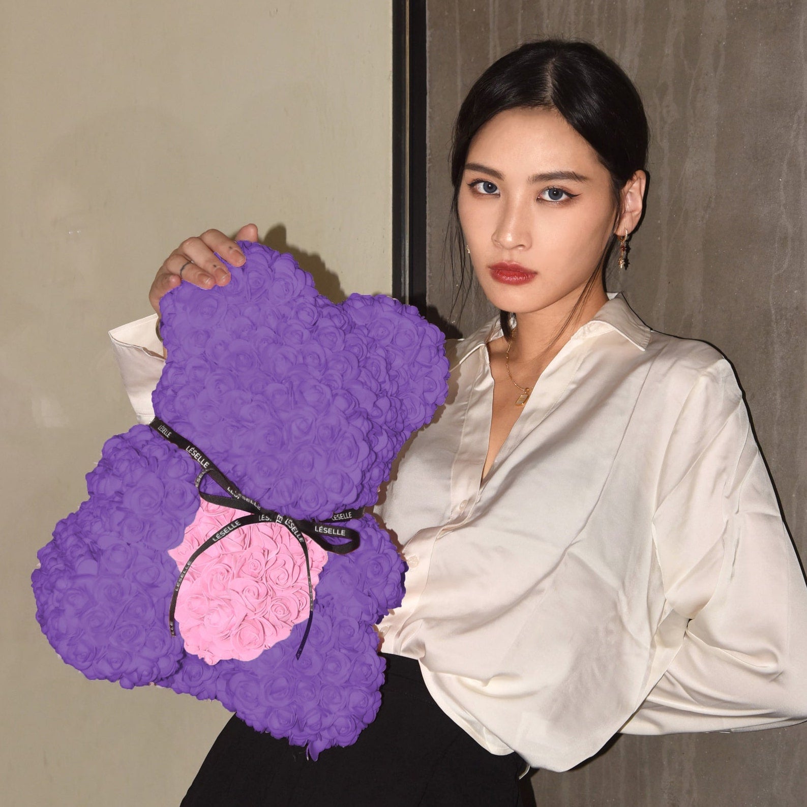 Léselle presents you an unforgettable gift that is sure to be treasured for years to come! This Black Rose Bear is made by 520 Roses and the number of 520 symbolizes love in Chinese culture. Delight your special someone on Valentine’s Day, anniversary, birthday or any unique occasion!