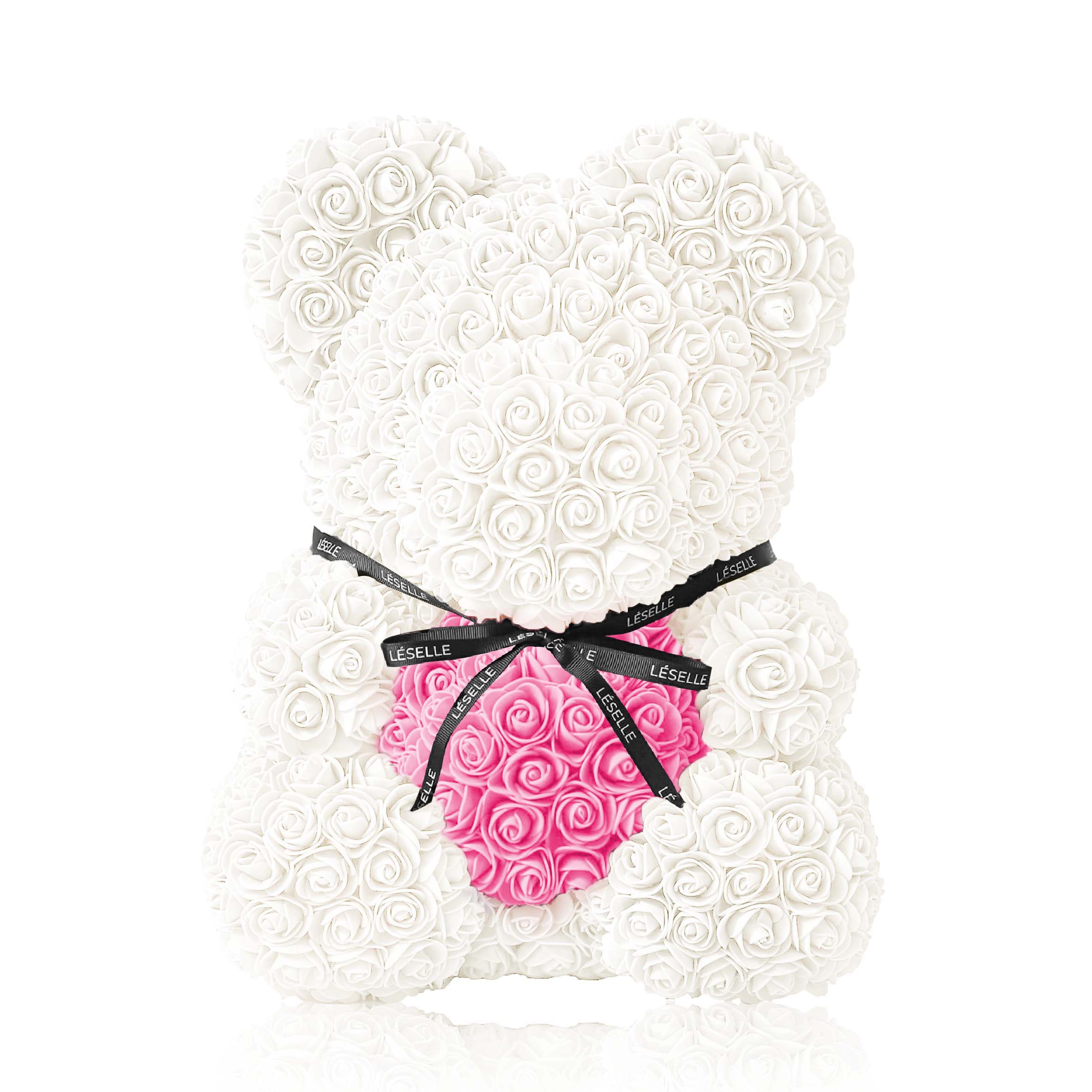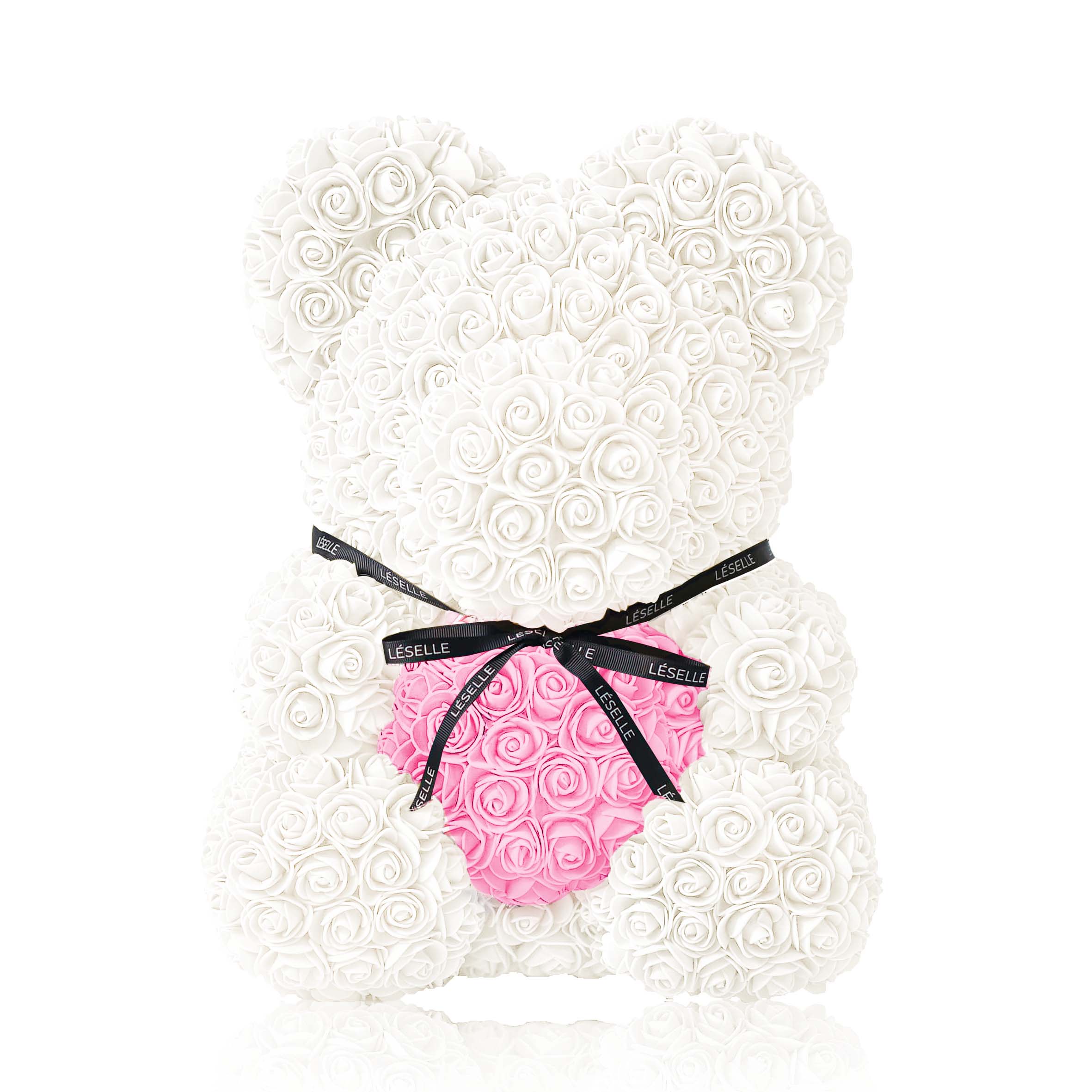 Léselle presents you an unforgettable gift that is sure to be treasured for years to come! This Pearl White Rose Bear is made by 520 Roses and the number of 520 symbolizes love in Chinese culture. Delight your special someone on Valentine’s Day, anniversary, birthday or any unique occasion!