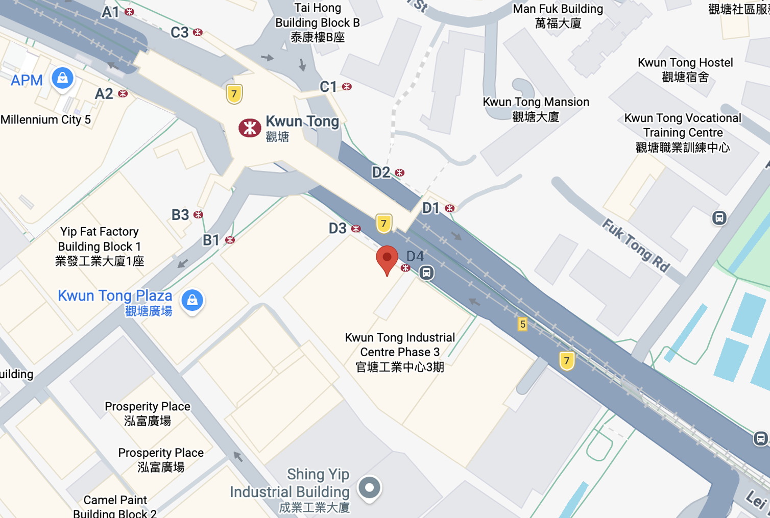 (Kwun Tong MTR Station Exit D4. Take the stairs down to street level, turn right and walk straight. The entrance is located between Phase 3 and Phase 4.)